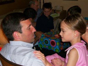 This is my daughter so happy to have her daddy home! The day after he arrived home, we celebrated Father’s Day and his birthday with his extended family.