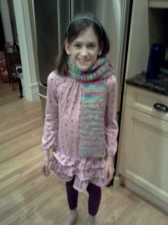 She asked for some more yarn for Christmas, and I think she’s finally passed the stage of producing things as practice that would cause frustration because of their imperfections. She’s worked hard to make a scarf and actually found ways to work around areas that weren’t just right.