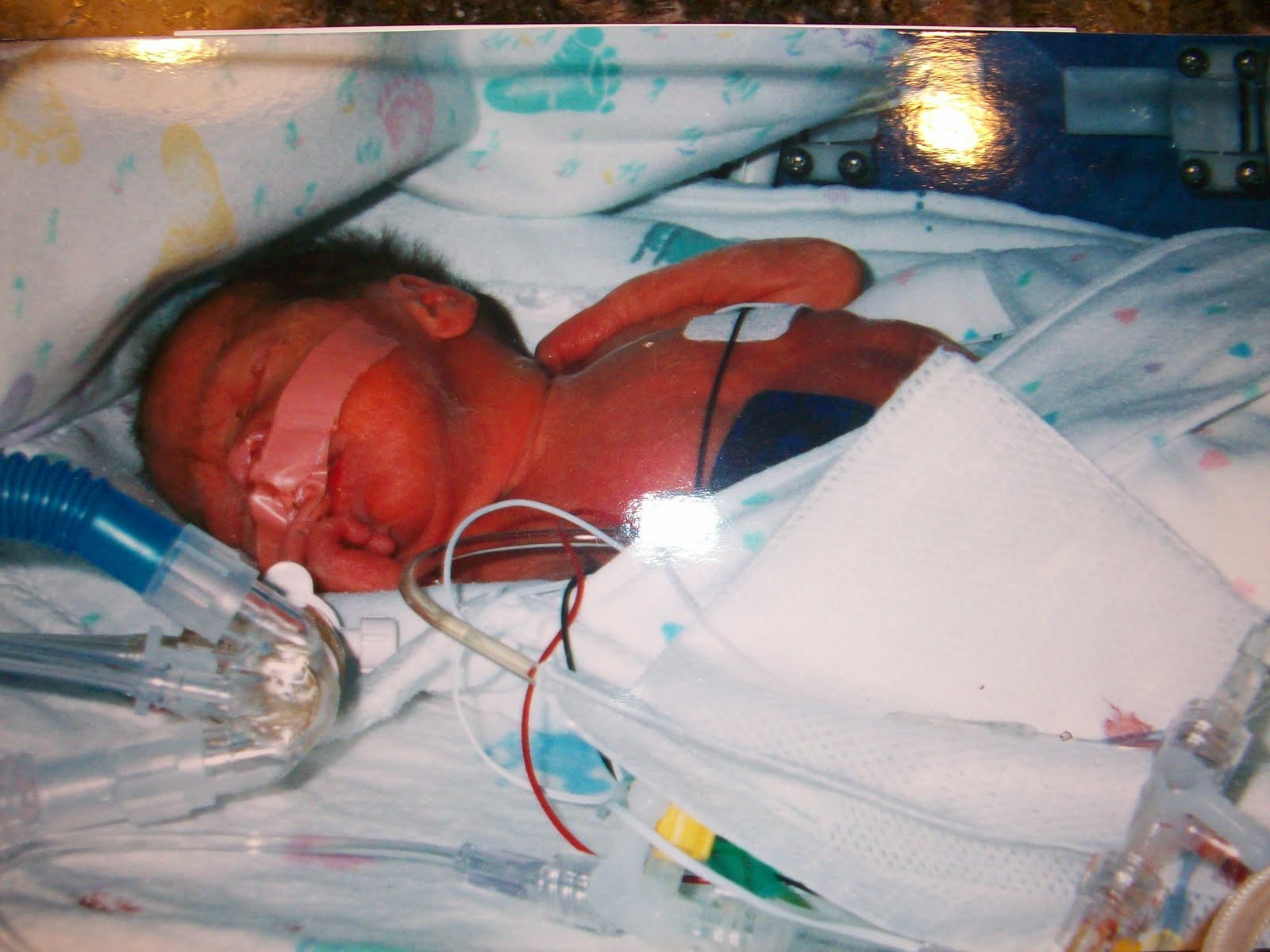 I’ve been remembering a lot lately about my daughter’s birth. If you are squeamish, you might not want to look at the pictures. She was born at 27 weeks and spent her first 3 months of life in the hospital. Because I was under general anesthesia for the delivery, the first time I saw her was about 3:00 a.m. (after an afternoon delivery) when I was enough awake again and able to see clearly. She was in the Neonatal Intensive Care Unit; I was in my own hospital room. I woke up excited to see the picture and asked my husband to turn on the lights and bring it over: “I can see now! Let me see her!” This is what I saw the first time I saw my daughter.